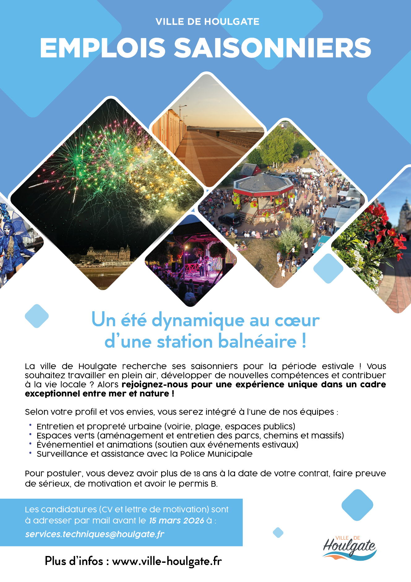 Envoyez votre CV et lettre de motivation par mail à la Direction des Services Techniques avant le 15 mars 2026 à services.techniques@houlgate.fr